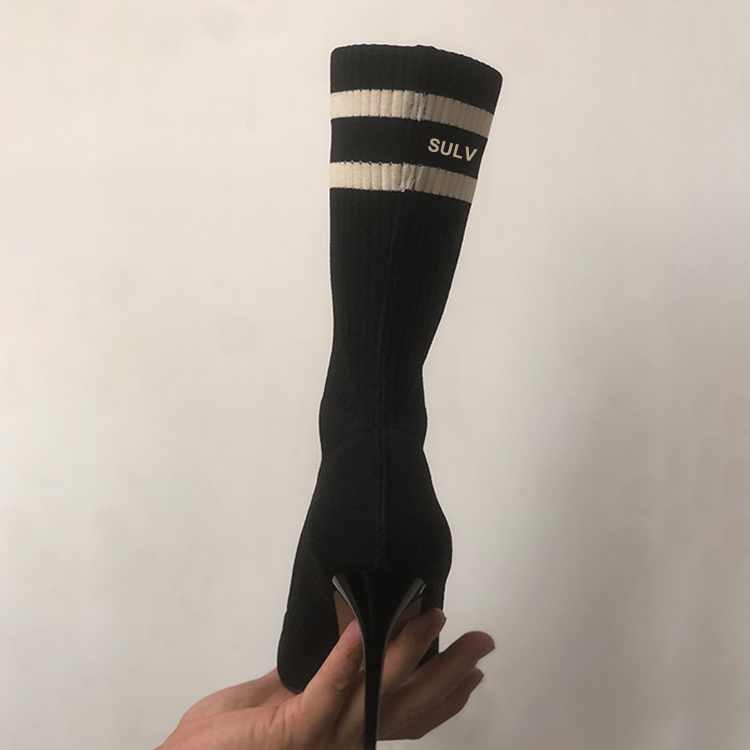 Engineered with precision-knit technology, these futuristic ankle boots combine athletic-inspired flexibility with razor-sharp sophistication. The stretch-knit upper molds to the foot like a second skin, while the reinforced pointed toe maintains structural elegance. A discreet 5cm block heel delivers subtle lift with cloud-like comfort, thanks to the memory foam footbed.