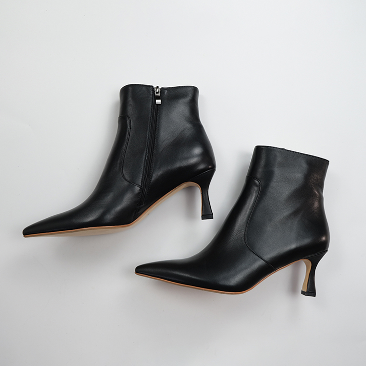 Crafted from premium full-grain leather, these sophisticated ankle boots combine enduring quality with contemporary style. The sleek silhouette features a refined toe shape and a comfortable 5cm stacked heel, offering all-day wearability without sacrificing elegance. The buttery-soft leather lining and cushioned insole ensure exceptional comfort, while the durable rubber outsole provides reliable traction.