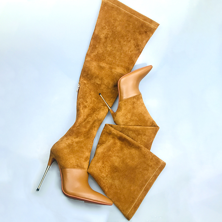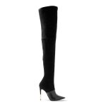 Crafted from ultra-soft brushed suede, these dramatic thigh-high boots feature a sleek 8cm stiletto heel for leg-lengthening allure. The body-hugging silhouette glides over curves with an interior comfort lining, while the extended shaft creates striking proportions.